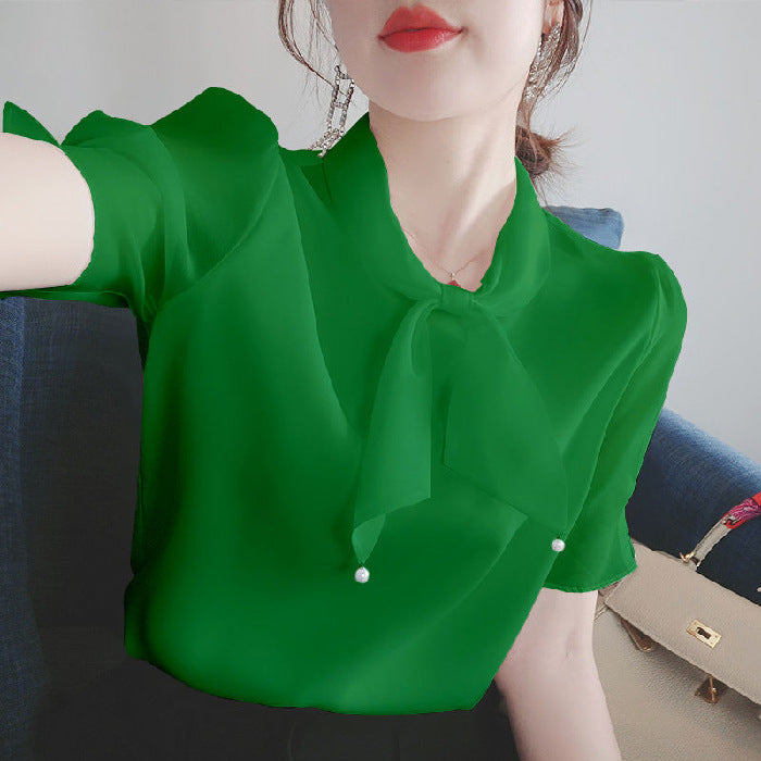 Bowknot V-neck Chiffon Shirt Blouse WomenBowknot V-neck Chiffon Shirt Blouse Women